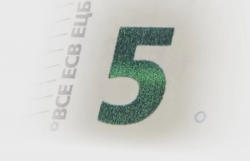 Priveşte bancnota spre o sursă de lumină. O imagine latentă devine vizibilă, redînd valoarea nominală a bancnotei şi o fereastră.